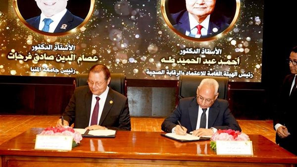 وقام بتوقيع البروتوكول كل من الدكتور أحمد طه، رئيس الهيئة، والدكتور عصام الدين صادق فرحات، رئيس جامعة المنيا، ويهدف إلى تصميم وتنفيذ سلسلة من البرامج التدريبية المتخصصة في مجال جودة الرعاية الصحية والاعتماد، لتطبيقها داخل المستشفيات والمنشآت الصحية التابعة لجامعة المنيا.