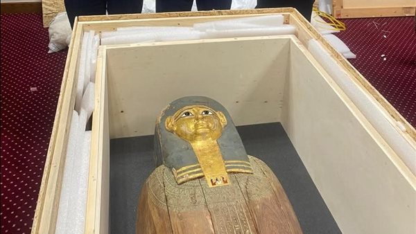 وأشار شعبان عبد الجواد مدير عام الادارة العامة للآثار المستردة والمشرف على الإدارة المركزية للمنافذ الأثرية بالمجلس الأعلى للآثار، الى ان القطع الأثرية المستردة عبارة عن تابوت خشبي مطلي ومذهب من العصر المتأخر، ويتميز بزخارفه الدقيقة التي تعكس الطقوس الجنائزية وتقنيات صناعة التوابيت في ذلك العصر، بالإضافة إلى لحية خشبية أثرية كانت جزءًا من تمثال مصري قديم، من عصر الدولة الوسطى، وتمثل نموذجًا لأحد العناصر الرمزية المهمة في فن النحت المصري القديم.