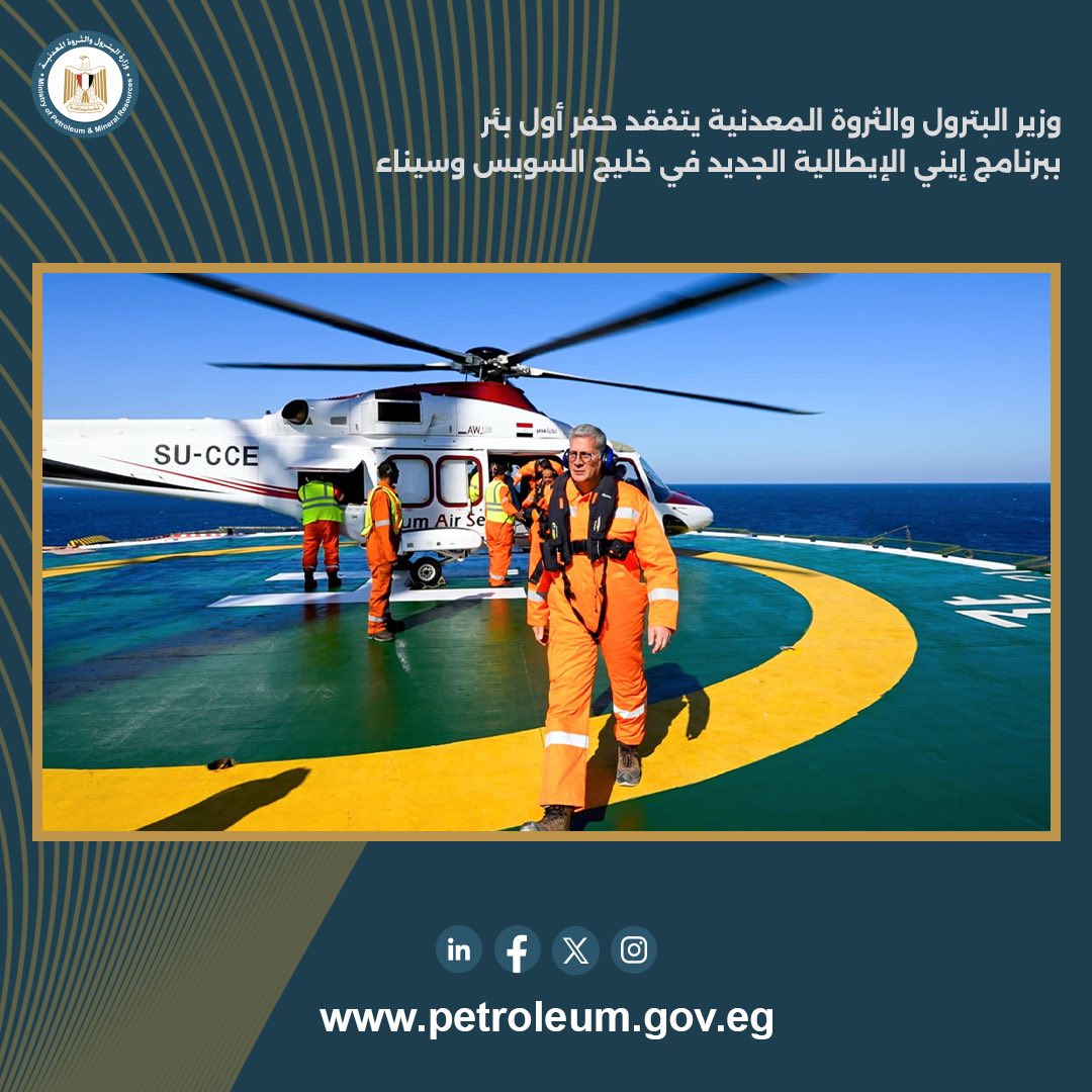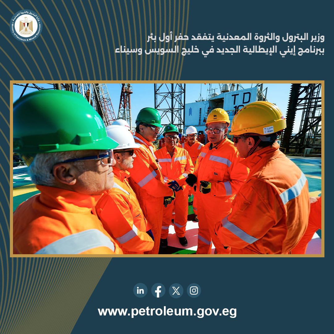 وزير البترول يتفقد حفر أول بئر ببرنامج إيني الإيطالية في السويس وسيناء