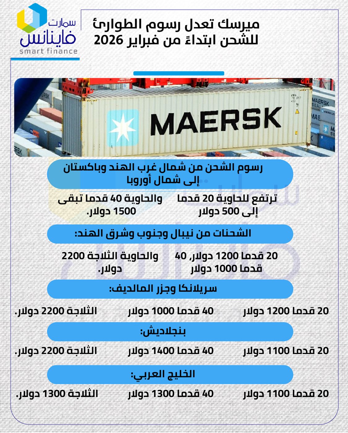 ميرسك تعدل رسوم الطوارئ للشحن ابتداءً من فبراير 2026