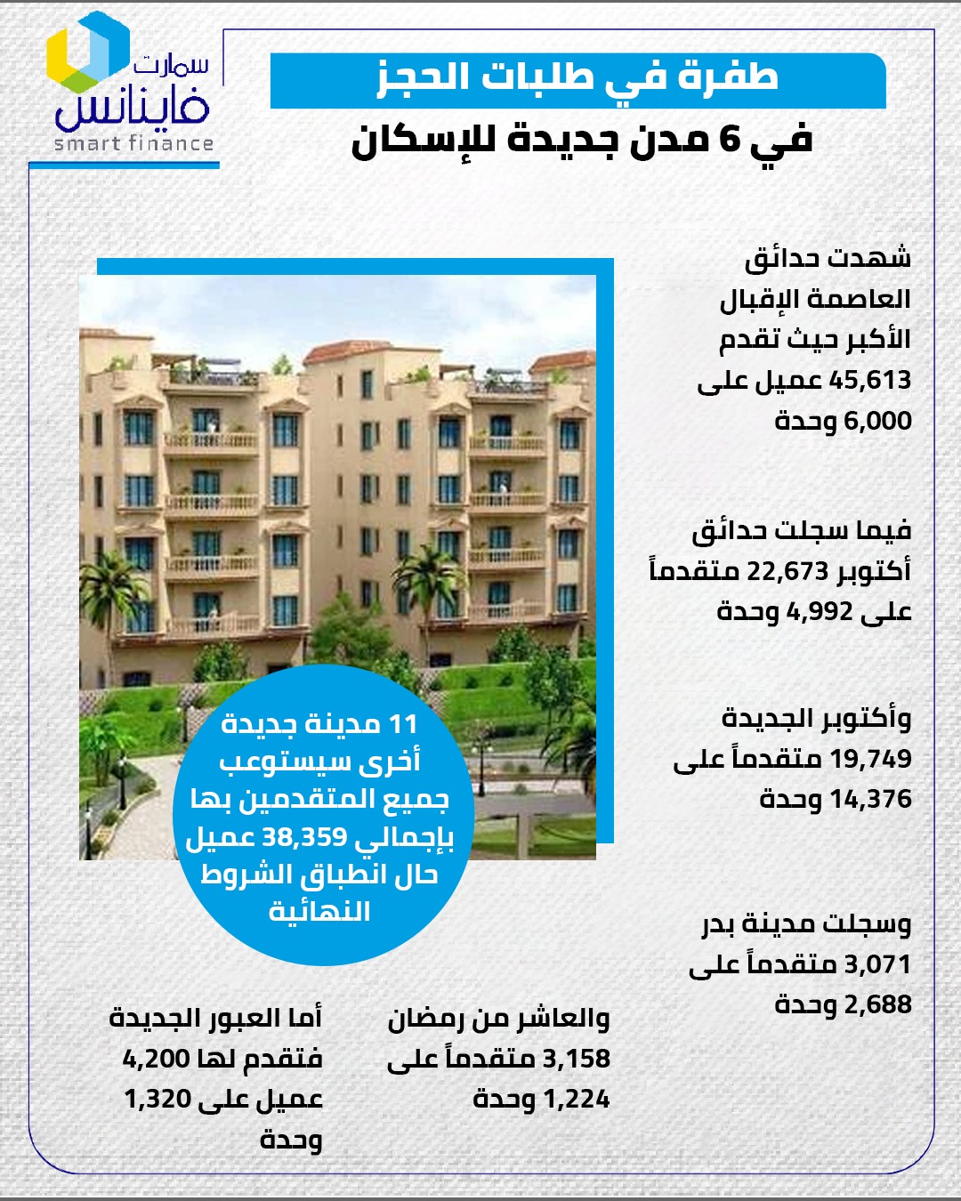 والعاشر من رمضان 3,158 متقدماً على 1,224 وحدة