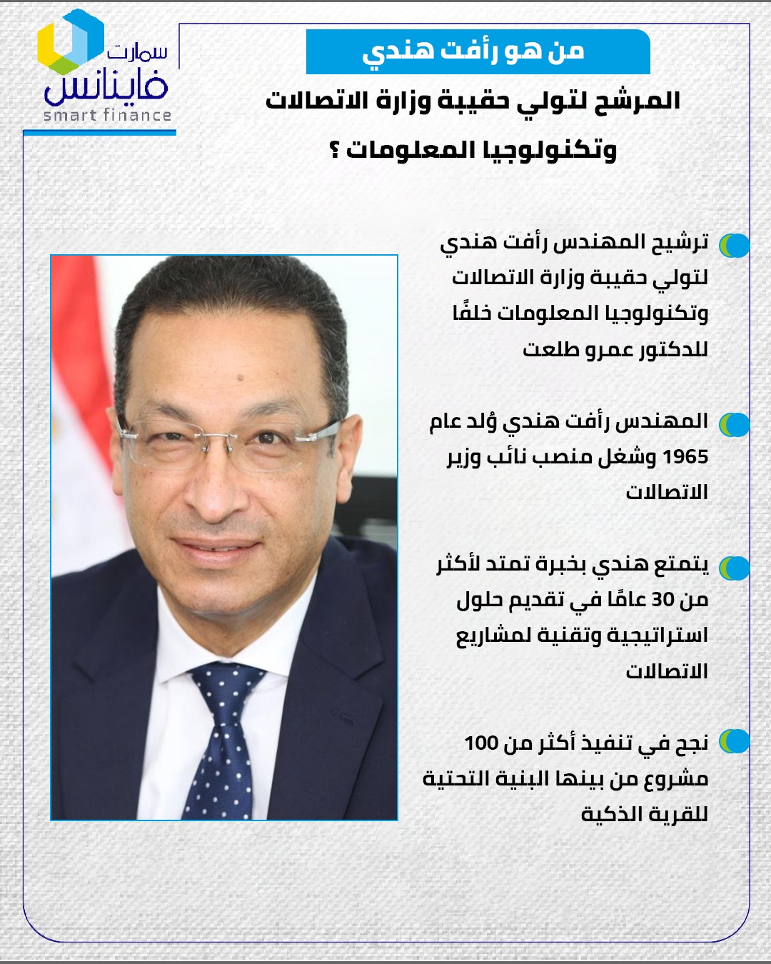 المهندس رأفت هندي وُلد عام 1965 وشغل منصب نائب وزير الاتصالات