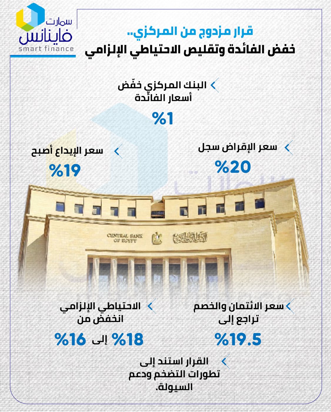 قرار مزدوج من المركزي.. خفض الفائدة وتقليص الاحتياطي الإلزامي