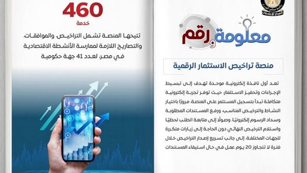 وتقدم المنصة ٤٦٠ خدمة تشمل التراخيص، والموافقات، والتصاريح اللازمة لممارسة الأنشطة الاقتصادية في مصر، لعدد ٤١ جهة حكومية مُصدرة للتراخيص، وذلك من خلال نافذة رقمية موحدة.