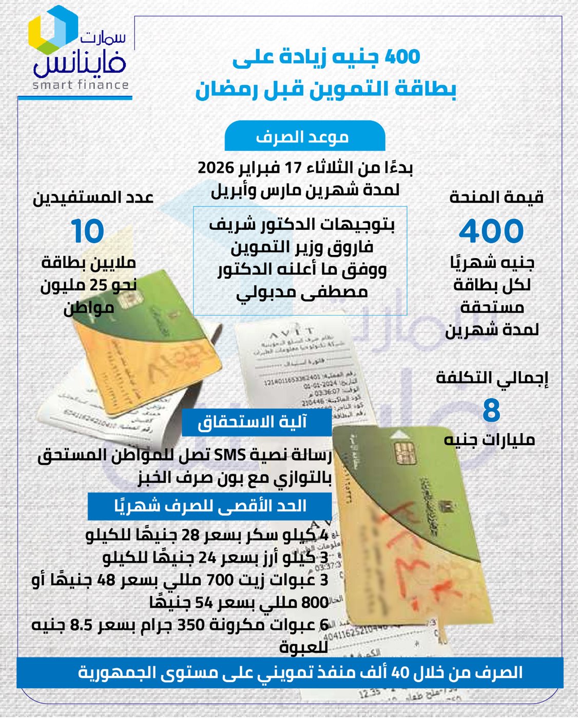 400 جنيه شهريًا لكل بطاقة مستحقة