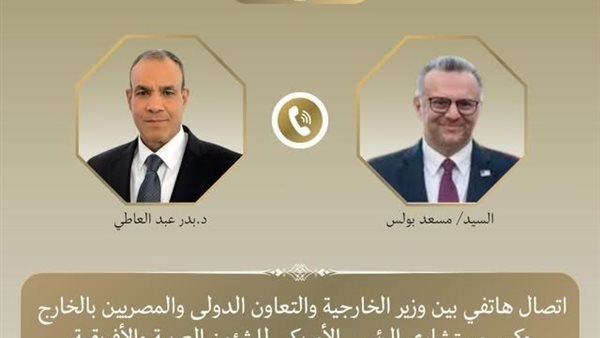 جرى اتصال هاتفي بين د. بدر عبد العاطي وزير الخارجية والتعاون الدولي والمصريين بالخارج، ومسعد بولس كبير مستشاري الرئيس الأمريكي للشئون العربية والأفريقية يوم الخميس ٢ ابريل، في إطار التنسيق والتشاور المستمر بين مصر والولايات المتحدة.
