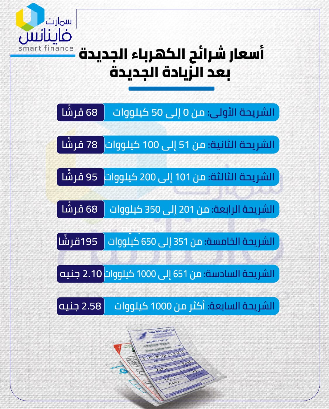 أسعار شرائح الكهرباء الجديدة بعد الزيادة الجديدة