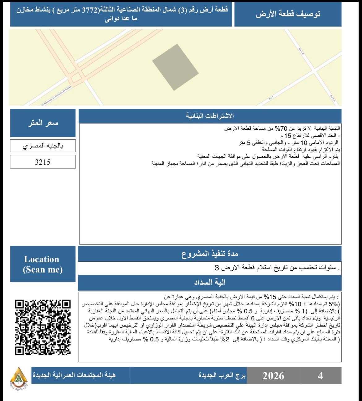 سعر المتر يبدأ من 3 آلاف جنيه.. طرح أراضي استثمارية بمدينة برج العرب الجديدة
