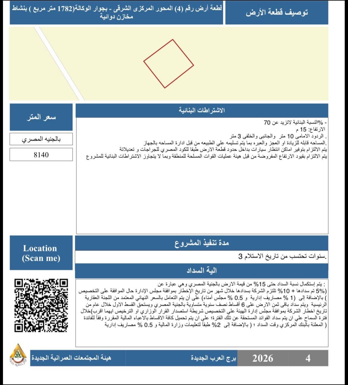 وأوضح الجهاز أن هذا الطرح يأتي ضمن رؤية متكاملة تستهدف توسيع قاعدة الأنشطة الاقتصادية والخدمية داخل المدينة، من خلال إتاحة أراضٍ بمواقع متميزة لمختلف الأنشطة التجارية والتعليمية والخدمية، بما يسهم في رفع كفاءة مستوى الخدمات المقدمة للمواطنين، ويعزز من المكانة الاقتصادية للمدينة.