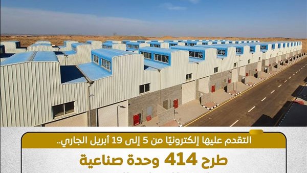 في إطار استراتيجية وزارة الصناعة لتوطين الصناعة ودعم سلاسل الإمداد، أعلنت الهيئة العامة للتنمية الصناعية عن طرح 414 وحدة صناعية كاملة التجهيزات والمرافق داخل 12 مجمعًا صناعيًا في 11 محافظة، وذلك بنظامي التمليك والإيجار وفق كراسة الطرح، عبر منصة مصر الصناعية الرقمية، اعتبارًا من 5 وحتى 19 أبريل 2026.