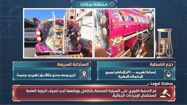 وتم ضبط محطة غير مرخصة بالشرقية تضم خزانات أرضية تتجاوز 200 ألف لتر وصهاريج علوية، وتبين من التحريات استخدامها في تداول منتجات مجهولة المصدر ومسروقة من خطوط الأنابيب.